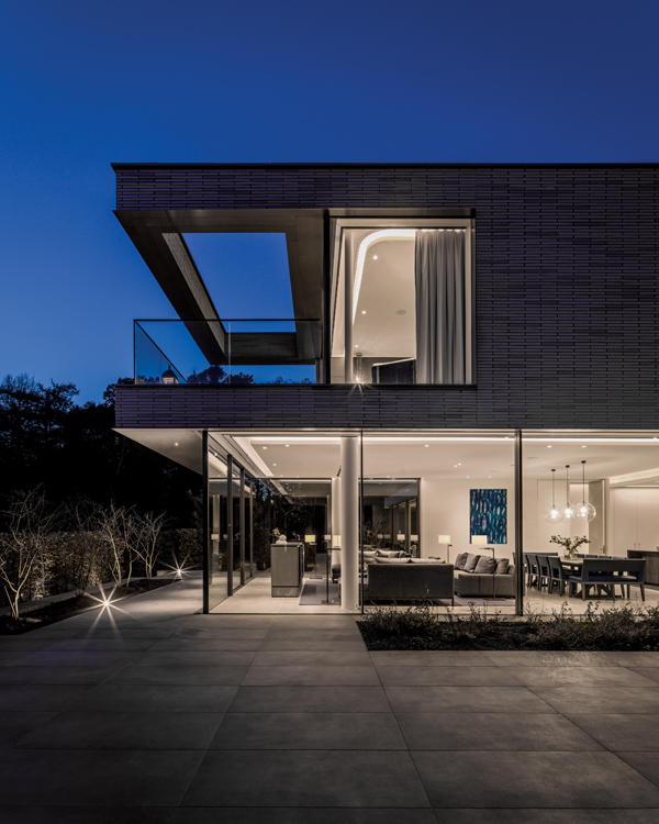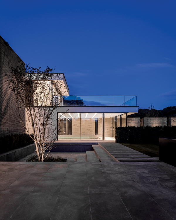 One of the priorities was to create a strong connection with the magnificent natural surroundings, yet retain seclusion. A meandering driveway accesses the new house, now the main residence, by passing the existing Victorian home, which the team also fully restored. On approach to the contemporary addition, an external reflecting pool is flanked by monolithic garden walls constructed of long, distinctive brick – an introduction to the architecture of the new house. “Our idea was to have the landscaping blend and interact with the building, blurring their boundaries and rooting the building to its site,” says Mr Phillips, whose work is known for creating a connection between indoor and outdoor living.