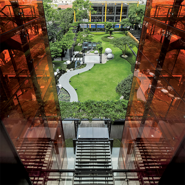 This landmark residential project comprises twin towers of 35 and 31 storeys respectively and is located in Taipei, adjacent to the beautiful Daan Forest Park. It was the stunning views of nature across the park that helped to inspire the architectural design of One Park Taipei. Featuring extensive use of glass, the buildings’ exteriors reflect the sunlight while the irregular structures of the balconies enhance the towers’ streamlined appearance. By adorning the buildings’ stairwells with orange laminated glass, the internationally renowned designer, RHSP, has created a truly eye-catching structure for the city.