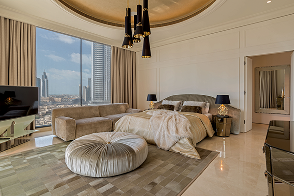 Containing only 28 penthouses, The 118 Downtown is next to the Dubai Mall and near the Burj Khalifa with direct views of the Downtown skyline. All of the residences take up an entire floor, with a choice of classic or contemporary interior design plans. This home, which is part of the contemporary collection, features an open plan living area with floor-to-ceiling windows, 4.2 metre high ceilings and a terrace.