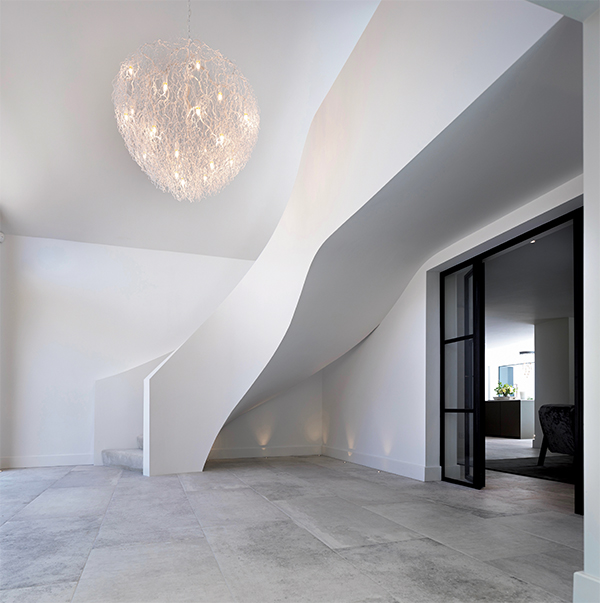 Effective design of such a space marries form and function; the staircase represents the metaphorical spine of the home. Historically accepted as a necessary but aesthetically uninviting feature, modern staircase designs are now architectural and sculptural masterpieces. From more traditional angular constructs, framing hallways with mirrored symmetry, to softer, organic shapes with cascading clean lines.