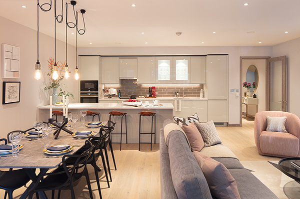 All homes offer five-star living including a 24-hour concierge and are finished to the highest quality. The first phase delivers 338 apartments, alongside 70,000 square feet of restaurant and retail space. Across three phases, the finished scheme will deliver 713 homes ranging from studios to four-bedroom duplexes and around 100,000 square feet of shops, community and leisure facilities.