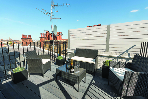 Providing excellent living space, the property features 18 foot ceilings in its reception room. The dining area is ideally located opposite the kitchen, while a very private roof terrace is accessed from the mezzanine sitting room/study.
