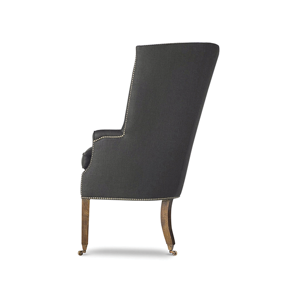 The Spencer, an unusual and very elegant wing chair with a striking, architectural shape, is a prime example. Available in any fabric, there are many alternative options for bespoke sizes, woodstain colours, leg and castor types etc.