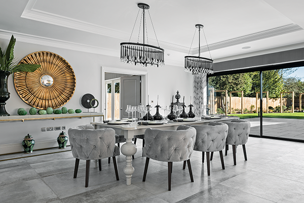 Within a secure gated location and landscaped grounds of approximately 0.4 acres, this new six-bedroom property has been designed to an exceptionally high quality over three floors. Its magnificent galleried entrance hall, flooded with light from a double-height window, leads into two elegant formal reception rooms that are ideal for entertaining. The vast kitchen/breakfast/garden room has sliding doors giving access to the terrace, while a walk-in pantry and utility room are close to the side door.