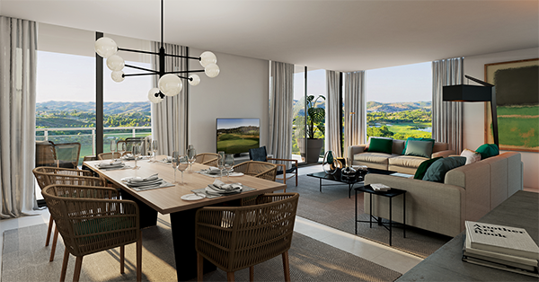 Elegantly positioned overlooking the 18th hole and in close proximity to the clubhouse and its collection of bars, restaurants and pro-shop, the community of eight impressive duplex penthouses alongside 32 two-bed apartments are being sold fully-furnished with sophisticated interiors. All will have access to a large heated swimming pool, gym, special owner services and ocean or golf views.