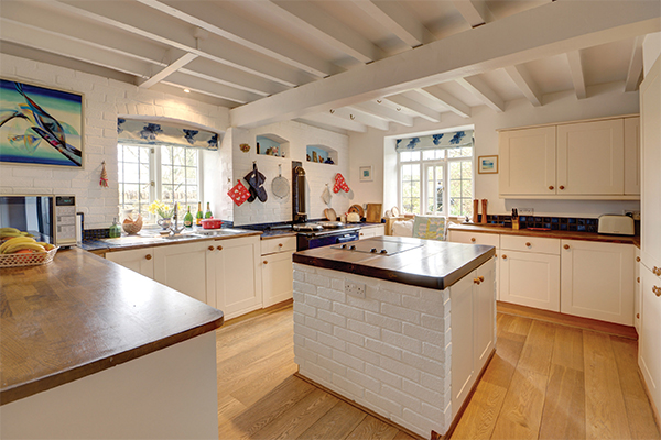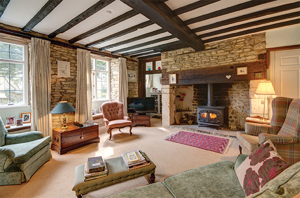 This family home offers spacious and bright accommodation over three floors with five double bedrooms, good ceiling heights and large windows. Downstairs there is an entrance hall, a family kitchen, vaulted breakfast area with original bread oven, drawing room featuring an inglenook fireplace with wood-burner, exposed beams and stonework, a second reception room, library area and study.