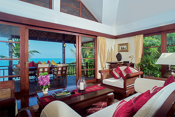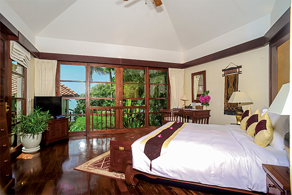 Within the grounds of the five-star Napasai Hotel, this traditional Thai style villa is approached via a buggy service along a private drive leading exclusively to a select few privately-owned oceanfront properties. The villa has four large en suite bedrooms off a central courtyard area with tropical trees, plants and water features. From three of these spacious bedrooms the wall-to-ceiling windows allow stunning ocean views while the master suite has its own balcony.