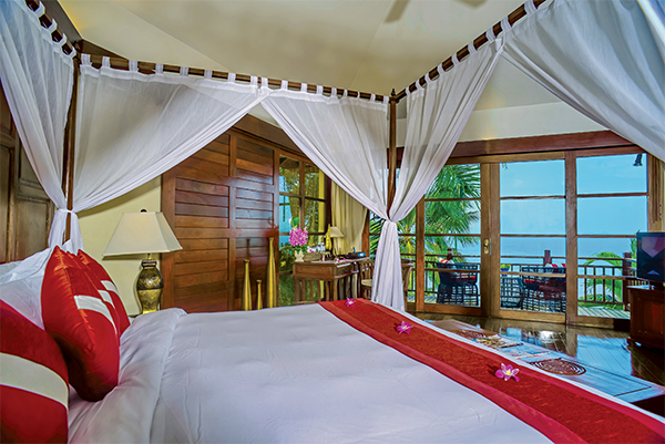 Other highlights include a large glass-fronted lounge with balcony, a fully equipped kitchen, private swimming pool and traditional style sala. Stone steps lead down to the beach in this small cove, which can only be reached by boat or via the hotel. The villa also has access to Napasai’s 24-hour security, floodlit tennis courts, spa, gym, concierge service and high class restaurants, together with room service.