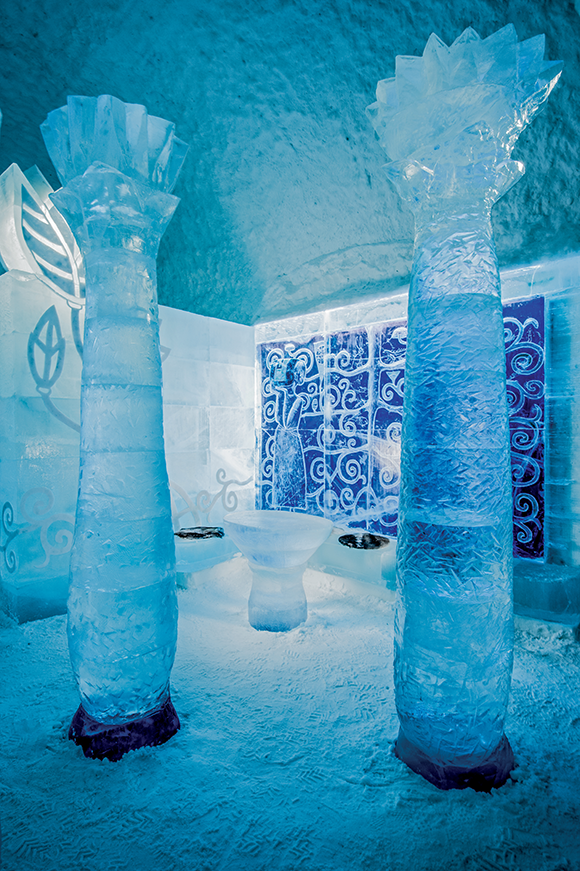 When the hotel melts each year in spring, what’s left are the 20 suites made of ice and snow inside Icehotel 365, which can be experienced all year round. This permanent construction accommodates nine Deluxe Suites with private sauna and bathroom, 11 Art Suites, an ice gallery and Icebar – all hand carved by select artists from around the globe.