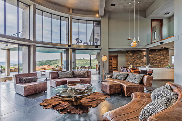 A two-storey beauty of glass, stone and crafty concrete which spirals to a 360-degree view over Pretoria East. It took nearly two years to complete, and thus makes every square metre a perennial pleasure. The home has features that include rock, concrete, glass and stone. It includes an open plan reception, kitchen and living room that leads to the scenic study, gym and four en suite bedrooms on the upper level. It also has a cellar, a cinema room, generator, swimming pool, central sound and lighting systems, programmed irrigation, landscaping, a dam, double glazing and heated floors.