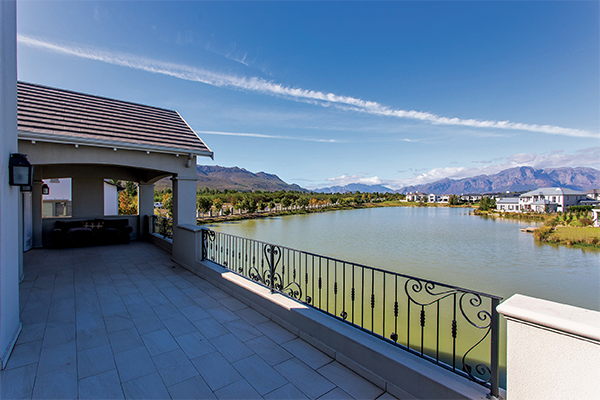 This family home overlooks a lake and the breath-taking Drakenstein and Franschhoek mountains. Situated in a quiet cul-de-sac, the spacious, north-facing, open plan house provides an exceptional flow throughout. Living areas open towards a beautiful garden and swimming pool. Complete with an underground wine cellar, two fireplaces and a gourmet kitchen, this is the perfect home for entertaining.
