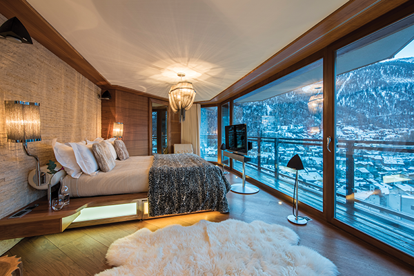 The chalet’s five individually designed bedroom suites have seating and dressing areas and further spectacular panoramic views. Guests enjoy a fully-inclusive package with a full complement of staff including a private chef, concierge and service staff.