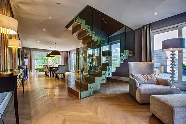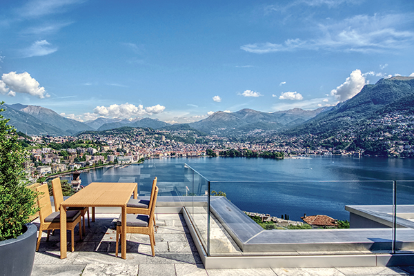 This three-bedroom, four bathroom duplex penthouse has a superb view of Lake Lugano. It includes a rooftop terrace, swimming pool, three-car garage and the benefit of exclusive hotel services.