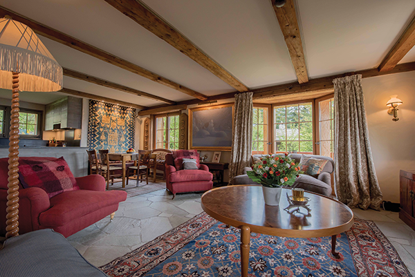 On the ground floor there is a third bedroom, family room (separate double bedroom, living room with fireplace and bunk beds), sauna, separate bathroom and a ski room. It has a balcony upstairs and a terrace and is sold partially furnished and with two indoor parking spaces.