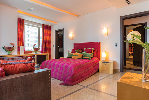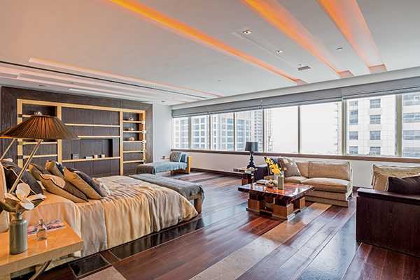 This four-bedroom penthouse has a built-up area of more than 14,300 square feet and a further 500 square feet of terrace. It features a triple-sized living room and lounge area with a direct view of the marina waterfront and an immense dining hall. There is a private study with its own lounge space and the kitchen is large enough to accommodate a secondary dining room.