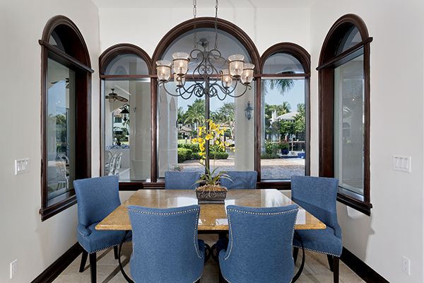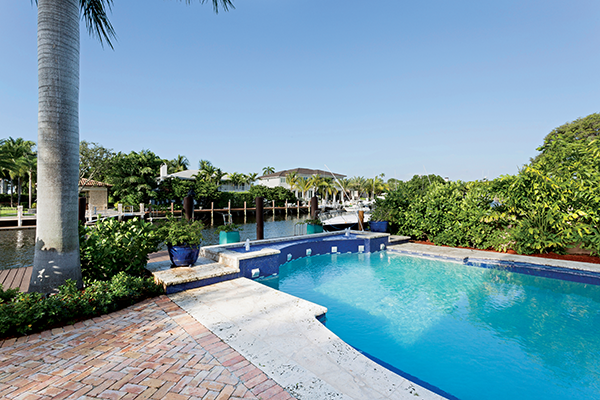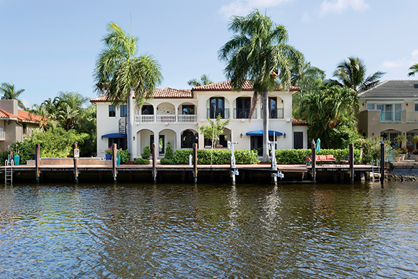 This beautiful gated estate looks south over 100 feet of shoreline with an 80-foot yacht dockage and quick access to the inlet. A fresh take on classic Mediterranean style, the architect-designed, six-bedroom residence opens up to the entertainment loggia and fountained pool from the comfortably elegant living/dining rooms, gourmet kitchen, and family room with professional-style bar. Upstairs, the multi-room master wing features two waterside balconies.