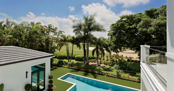 Resort-at-home living is elevated to an art in this sophisticated new abode giving an expansive view of the 9th and 18th fairways of Royal Palm’s Jack Nicklaus Signature golf course. The six-bedroom residence features a curvaceous, loft-style staircase and an open-concept living room, looking out on to the pool and garden. A club room and casual living space open to the pool and dining lanai and the gorgeous backdrop of the golf course. Privately placed bedroom suites feature a first-floor master retreat that steps out by the pool and includes a spa-like bath.