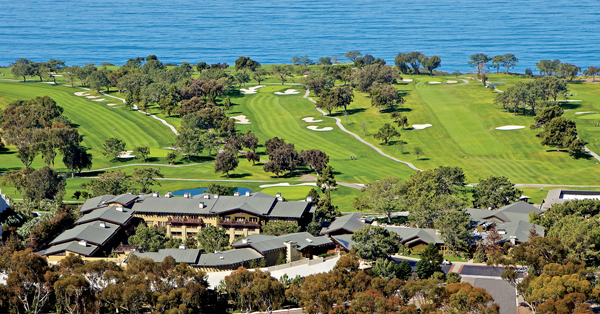 This AAA Five Diamond resort in San Diego, California overlooks the world-renowned Torrey Pines Golf Course with views of the Pacific Ocean.