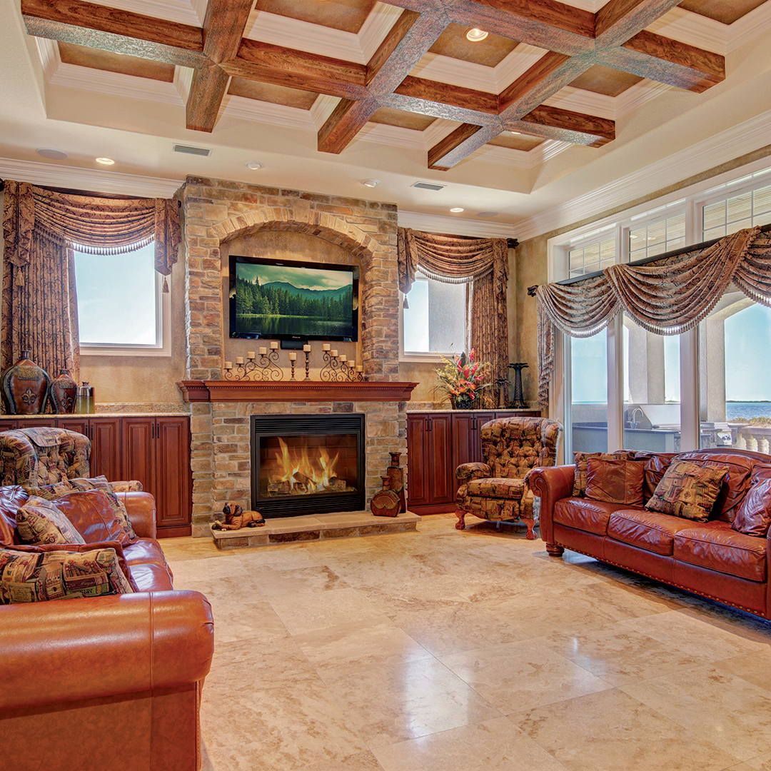 It includes five bedrooms and seven bathrooms in over 8,950 square feet of living area. Outside, a magnificent west facing terrace extends the entire length of the home. Breath-taking ocean views can be enjoyed throughout the property, comprised of over 23 acres, with over 1,100 feet of waterfront.
