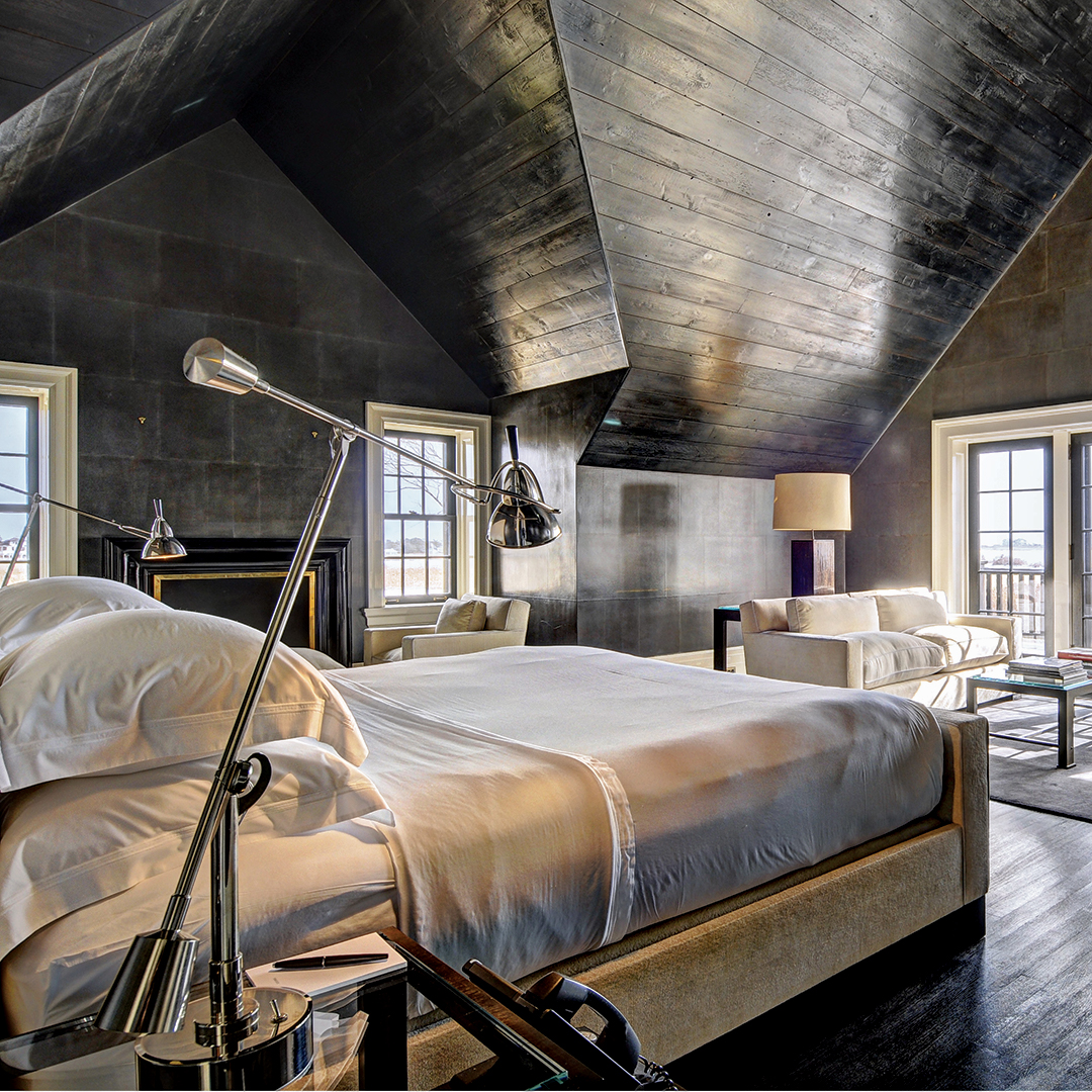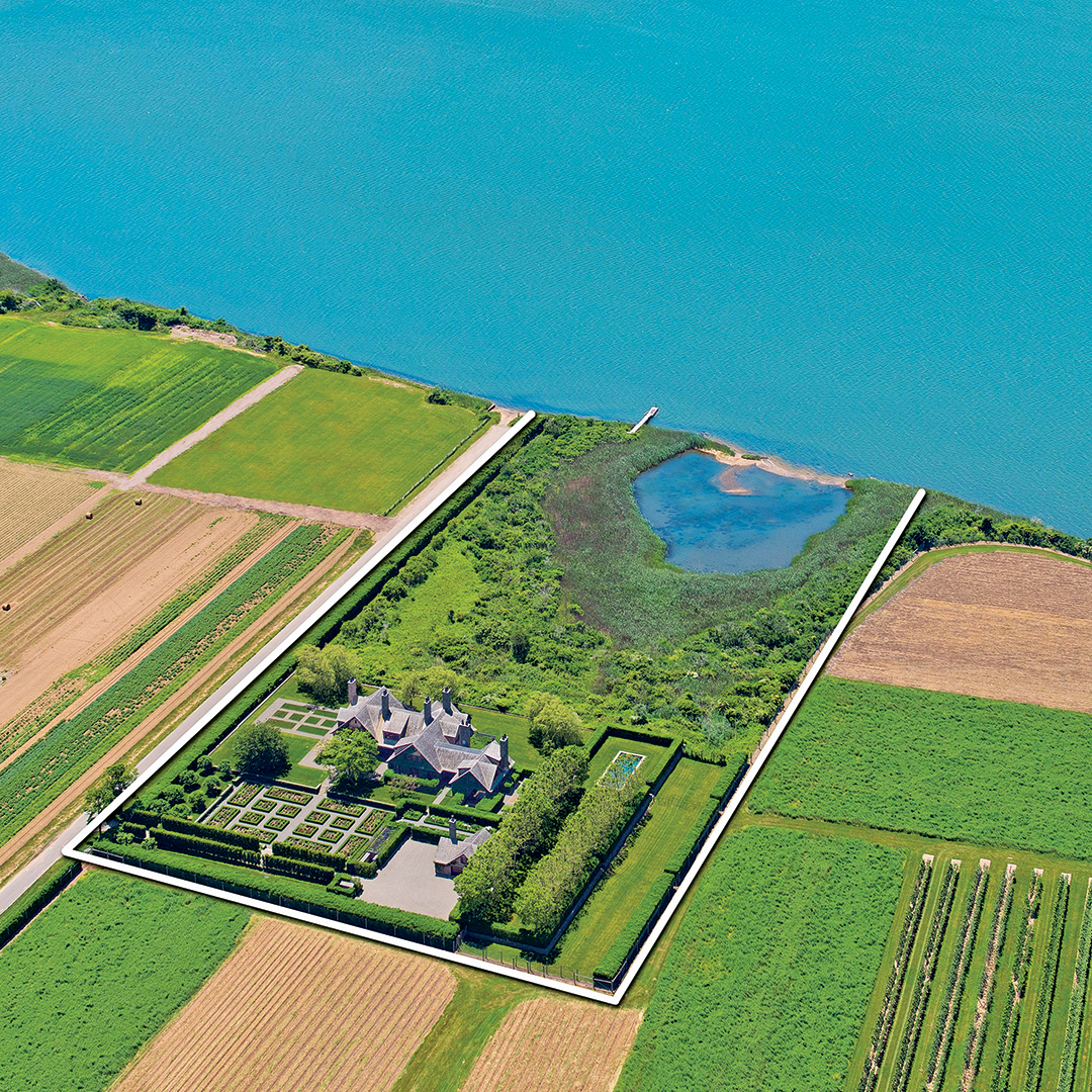 Upstairs, the master suite encompasses the entire south-eastern wing and includes dramatic views of Mecox Bay and the ocean beyond. There are three additional en suite bedrooms and a study on this floor. The level of excellence continues outside to the design of the six acres of gardens and accessory structures including a carriage house and heated pool. A nature path also leads down to the waterside with its large dock. Separate, though attached, the guest cottage has a fireplace, studio, second-floor en suite bedroom and access to the outdoor spa.