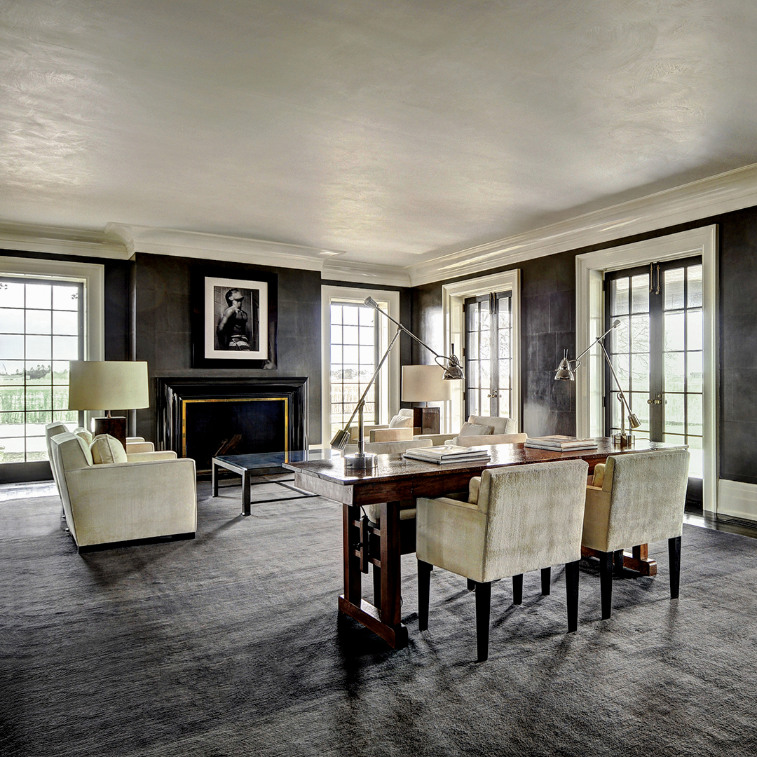 Surrounded on three sides by land farmed by the same two families since the 1600s, this approximately 6.9 acre estate is bordered on the fourth side by around 360 feet of water frontage on Mecox Bay. Taking five years to complete, the property now encompasses over 12,000 square feet of living and entertaining spaces. These include a two-storey library, spacious living room, smoking room, formal dining room, butler’s pantry, chef’s kitchen with walk-in pantry and a large gathering room opening on to the trellis-covered outdoor living room with stone fireplace.