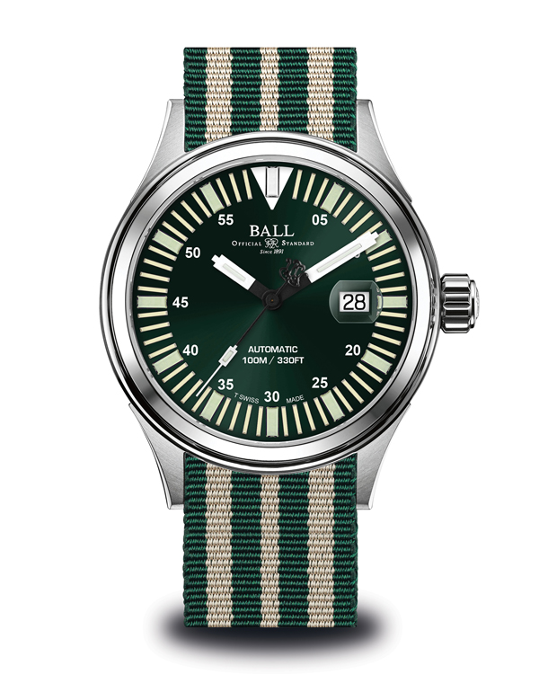 To protect against intense shock impact, the automatic movement is shielded by Ball’s patented ‘Amortiser’ system.